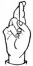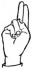 На ћирилици написано ЛАБУДА ВЕХТИЋ састоји се из 12 слова [?]. Исписано ћириличном једноручном азбуком за глувонеме: